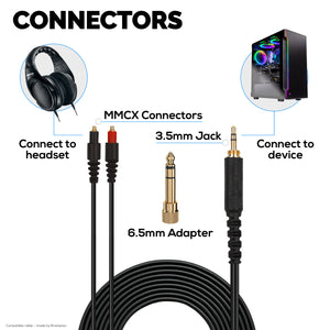 كابل صوت بديل متوافق مع سماعات الرأس Shure SRH1440 وSRH1540 وSRH1840 - موصلات مطلية بالذهب من MMCX إلى 3.5 مم مع محول 6.5 مم
