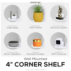 رف عائم صغير مقاس 4 بوصات ، لاصق ومسمار ، لمكبرات الصوت التي تعمل بالبلوتوث ، والكاميرات ، والنباتات ، والألعاب ، والكتب والمزيد ، ورفوف سهلة التركيب على الحائط (أبيض)