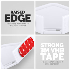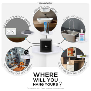 أرفف Brainwavz العائمة سهلة التعليق دون الحاجة إلى أدوات أو براغي. نحن نستخدم فقط أفضل شريط 3M VHB لتركيب الأرفف على مجموعة متنوعة من الأسطح. ما عليك سوى نزع الدعامة الحمراء من شريط 3M VHB ، وتثبيت حامل الحائط الخاص بنا في المكان المطلوب ، واتركه لضبطه لبضع ساعات وستكون جاهزًا للانطلاق.