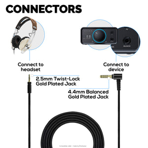 كابل صوت متوازن متوافق مع سماعات Sennheiser Momentum - مقبسان مطليان بالذهب TRRRS متوازنان بقياس 2.5 مم وقفل ملتوي بقياس 4.4 مم