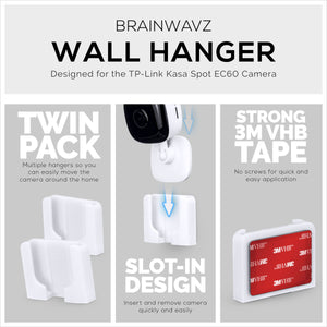 حامل حائط لكاميرا Kasa KC100 ، KC105 ، EC60 (عبوتان) ، حامل لاصق لكاميرا TP Link الذكية ، يثبت في دقائق ، حامل شماعات بدون فوضى من Brainwavz (أبيض)