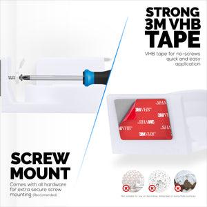 لا يتطلب خيار التثبيت السريع الخاص به أي براغي أو أدوات. نحن نستخدم فقط أفضل شريط 3M VHB لتركيب الأرفف على مجموعة متنوعة من الأسطح. ما عليك سوى نزع الغطاء الأحمر من شريط 3M VHB والصقه في المكان المطلوب ، واتركه لساعات قليلة وستكون جاهزًا للانطلاق. لا تضعه على الجدران المطلية أو المعتمة أو الجصية ، فهذه الأسطح ليست مناسبة للتركيب اللاصق!