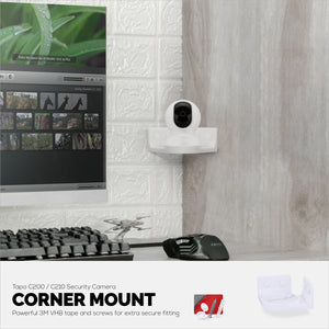 دعامة تثبيت زاوية مصممة لكاميرا Tapo Pan / Tilt C200 / C210 Pet & Baby الداخلية ، سهلة التركيب ، المسمار أو الالتصاق. قم بتركيب الكاميرا على أي سطح رأسي للحصول على زوايا مشاهدة أفضل ، بالإضافة إلى أنها بعيدة عن الطريق ولن تتعرض للطرق أو تحريكها عن طريق الخطأ.