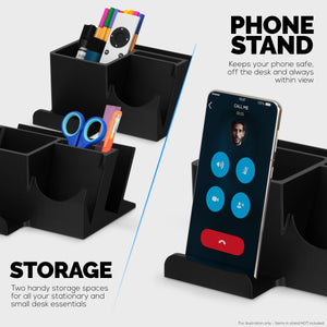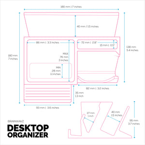 مقصورتان منفصلتان لتنظيم أساسيات مكتبك. الحجم الأكبر مناسب للقرطاسية وأجهزة التحكم عن بعد وغيرها من العناصر الكبيرة، بينما يمكن للحجم الأصغر تخزين العناصر الأصغر مثل الأقلام والمقص والمساطر والمزيد.