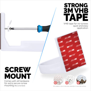لا يتطلب خيار التثبيت السريع الخاص به أي براغي أو أدوات. نحن نستخدم فقط أفضل شريط 3M VHB لتركيب الأرفف على مجموعة متنوعة من الأسطح. ما عليك سوى نزع الغطاء الأحمر من شريط 3M VHB والصقه في المكان المطلوب ، واتركه لساعات قليلة وستكون جاهزًا للانطلاق. لا تضعه على الجدران المطلية أو المعتمة أو الجصية ، فهذه الأسطح ليست مناسبة للتركيب اللاصق!