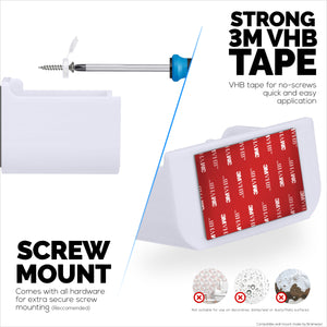 لا يتطلب خيار التثبيت السريع الخاص به أي براغي أو أدوات. نحن نستخدم فقط أفضل شريط 3M VHB لتركيب الأرفف على مجموعة متنوعة من الأسطح. ما عليك سوى نزع الغطاء الأحمر من شريط 3M VHB والصقه في المكان المطلوب ، واتركه لساعات قليلة وستكون جاهزًا للانطلاق. لا تضعه على الجدران المطلية أو المعتمة أو الجصية ، فهذه الأسطح ليست مناسبة للتركيب اللاصق!
